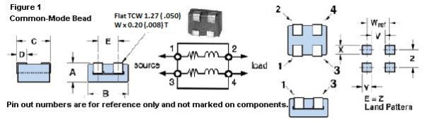 Surface mount common-mode beads are available from Fair-Rite in several materials and sizes. The common-mode bead provides a common magnetic path for the flux generated by the current to the load and the return current from the load. The current compensation results in zero magnetic flux in the bead.